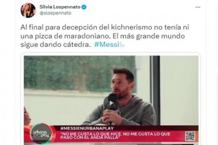 #Redes | La curiosa reflexión de la diputada Silvia Lospennato al ver la entrevista en la que Lionel Messi admite que "no le gusta" el 'andá pa' allá, bobo'.