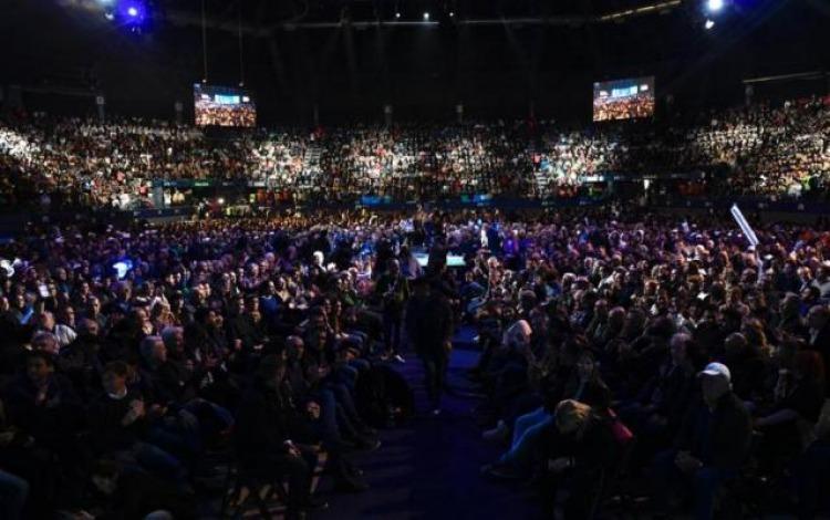 Creo que lo mejor para Argentina y para el Frente de Todos es la unidad, pero si se decide que haya PASO anotennos en las PASO que ahí también vamos a estar", exclamó en medio de dirigientes y políticos que festejaron en estadio Arena de Malvinas Argentinas, con más de 12.000 lugares ocupados.