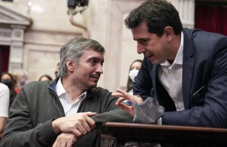 Axel Kicillof y Máximo e Insaurralde entorno a la candidatura a la vicegobernación. También había reticencia en el líder de La Cámpora respecto de la inclusión en la nómina para la Cámara baja nacional de