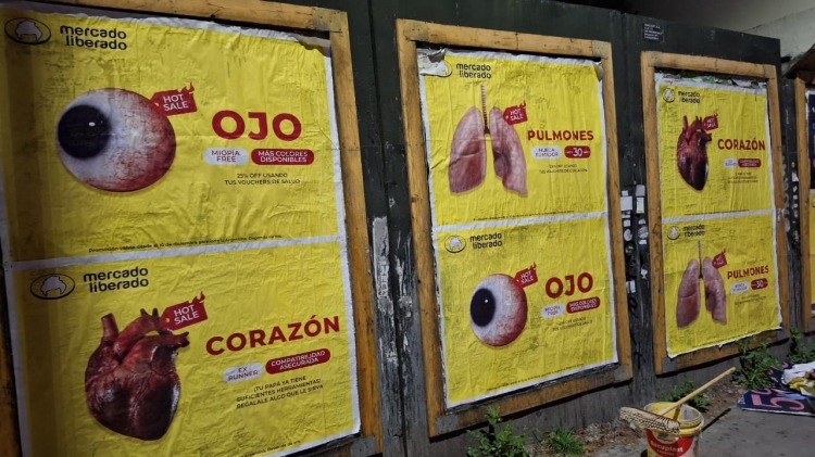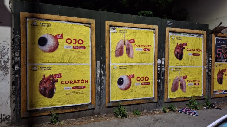 “Promoción válida desde el 10 de diciembre para toda la Argentina, depende de vos”, advierten los afiches de una campaña en contra del candidato libertario. Los carteles simulan un hot sale de órganos en un “mercado liberado” tal como propone el economista libertario, con promociones del estilo "25% off usando tus vouchers de educación".