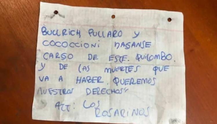 "Bullrich, Pullaro y Coccocioni háganse cargo de este quilombo y de las muertes que va a haber. Queremos nuestros derechos. atte: los rosarinos". Ante tal situación, las autoridades del jardín tomaron la decisión de suspender las clases durante el día de hoy como medida precautoria.