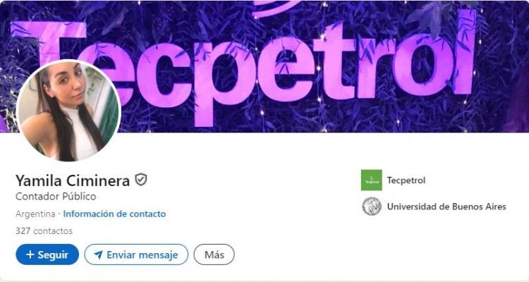 cuenta de la mujer en la red social Linkedin surge que trabaja en Tecpetrol, la empresa de energía (petrolera y eléctrica) del Grupo Techint.