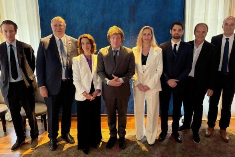 En la continuidad de su agenda oficial en París, tras la bilateral con el presidente de Francia Emmanuel Macron, el mandatario Javier Milei mantuvo este viernes un encuentro con cinco empresarios europeos con el objetivo de traer inversiones a la Argentina.