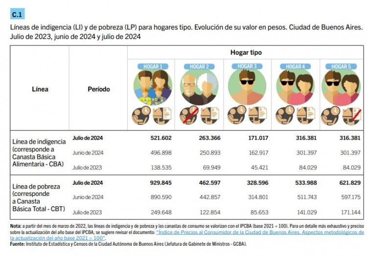 Una familia porteña necesitó $929.845 en julio para cubrir el costo de la Canasta Básica Total (CBT), que se utiliza como umbral para medir la pobreza, esto sin contar el valor del alquiler de la vivienda y expensas. Asimismo, esta misma familia requirió $521.602 para alcanzar el costo de la Canasta Básica Alimentaria (CBA), que mide la línea de indigencia.