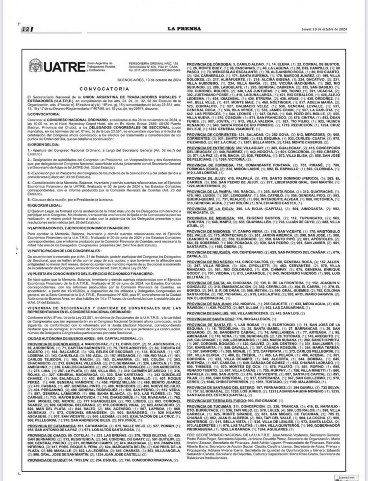 Cabe señalar que dicho congreso, además de desatar la indignación interna dentro del gremio, ha generado un llamado a la justicia para intervenir en el caso, con seccionales de distintas partes del país como Pilar, La Plata, Necochea, Zárate, Tandil, entre otras, pidiendo que se investiguen los manejos irregulares en UATRE y la posible malversación de fondos destinados a los trabajadores rurales.