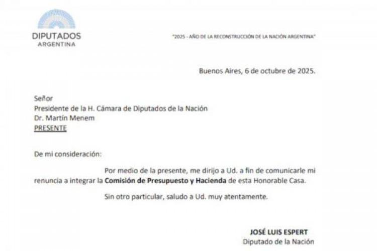 La nota de renuncia ingresó esta mañana en la Cámara baja y dejó vacante un sillón clave en plena discusión fiscal. Espert no solo integraba la comisión, también la presidía, y la incomodidad creció con el avance de las denuncias por su relación con el empresario investigado por narcotráfico en Estados Unidos. Desde la presidencia de Diputados señalaron que “en la próxima reunión de la comisión el vicepresidente Carlos Heller (UP), debería dar lugar a la moción que proponga el bloque de LLA para el reemplazo en la presidencia de la misma”.