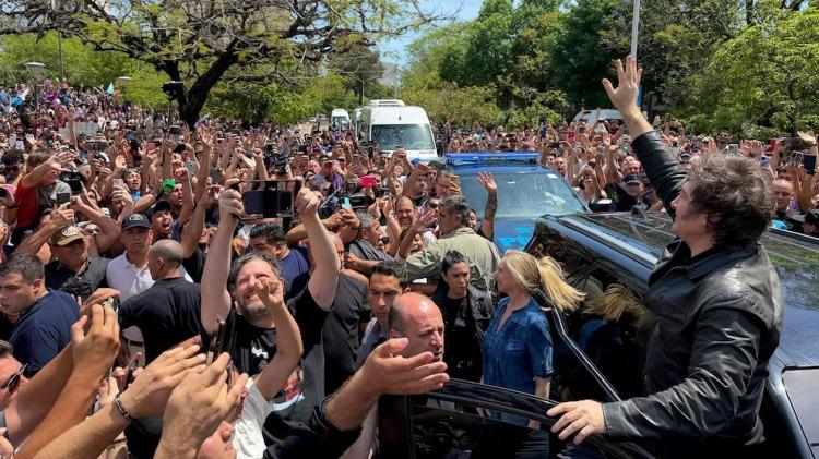 Unos pocos minutos después, Milei descendió de la 4x4, tomó un micrófono y comenzó a hablar a la multitud: “Nos encontramos en esta disyuntiva, si avanzamos hacia las ideas de la libertad y la prosperidad, o volvemos al pasado kirchnerista”.