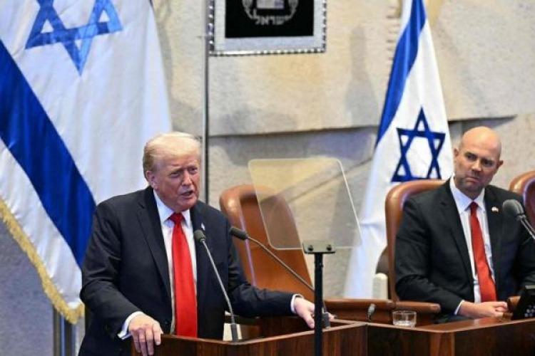 Aunque Trump fue recibido con aplausos y ovaciones por la mayoría del Parlamento, tuvo que interrumpir brevemente su discurso cuando el legislador opositor Ayman Odeh levantó un cartel que decía "Reconozcan a Palestina". El hombre fue retirado del recinto en medio de gritos y protestas.