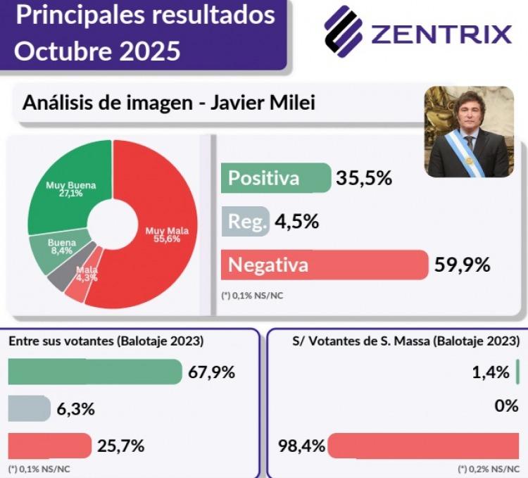 El Monitor de Opinión Pública (MOP) de Zentrix Consultora, correspondiente a octubre de 2025, registró una tendencia que inquieta al oficialismo: la pérdida de confianza en Javier Milei dentro de su propio electorado.