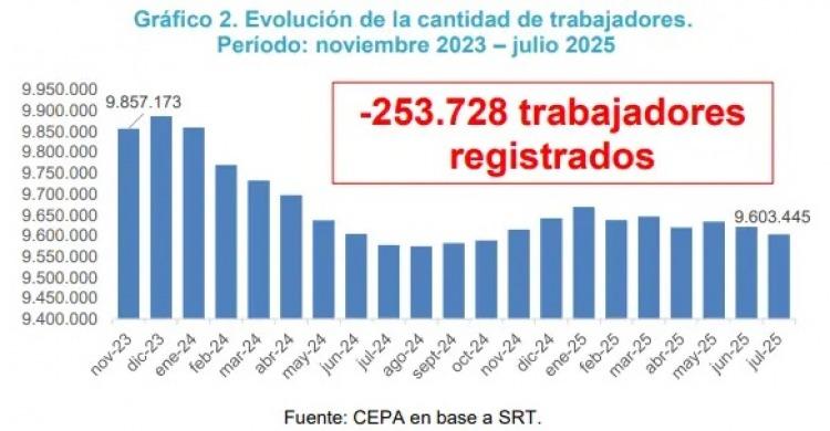 El Centro de Economía Política Argentina (CEPA) advirtió que durante los primeros veinte meses de gestión de Javier Milei se destruyeron 253.728 empleos registrados y desaparecieron 18.083 empresas. Según indicó el informe, esto equivale a 30 firmas y 416 trabajadores menos por día desde el inicio de la administración de La Libertad Avanza.