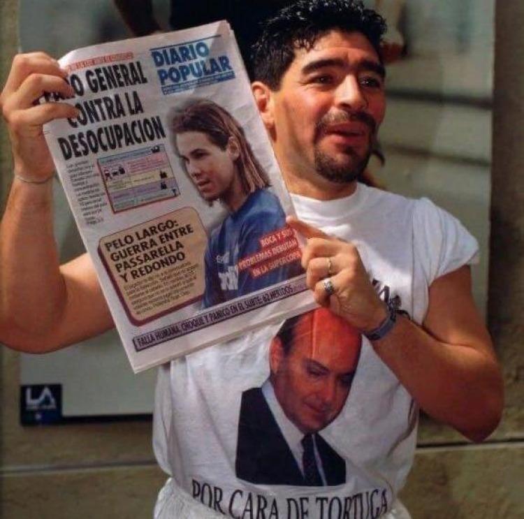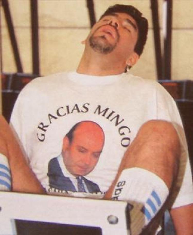 Empero, a partir del ‘95 los coletazos y estragos de “la fiesta menemista” se empezaban a sentir: la desocupación, las denuncias de corrupción, la inflación, el riesgo país y el ajuste eran moneda corriente en la agenda argentina. Maradona se mostraba entonces con una remera con la leyenda “Gracias Mingo por cara de tortuga”. “Mingo” era el ex ministro de Economía Domingo Cavallo y “cara de tortuga” era Bernardo Neustadt, uno de los salpicados por las denuncias de Cavallo a Alfredo Yabrán.