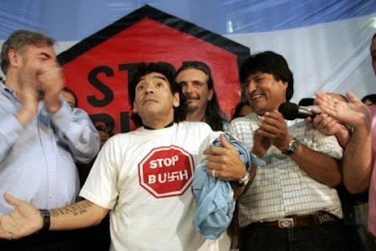Luego, en pleno auge del kirchnerismo en Argentina y con la construcción de la “Patria Grande” en alza, Maradona se planta, definitivamente, como militante del modelo nacional y popular a nivel regional, y participa del "No al ALCA" en las Cumbres de las Américas en Mar del Plata.