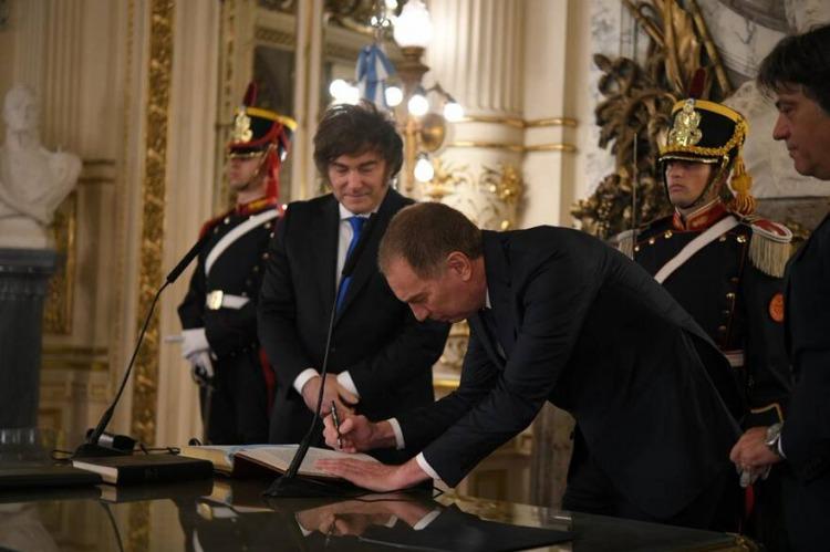 Se trató de un acto breve en el Salón Blanco de la Casa Rosada. No hubo discursos ni palabras de agradecimiento. Solo la toma de juramento del presidente Javier Milei y un abrazo efusivo con Santilli.