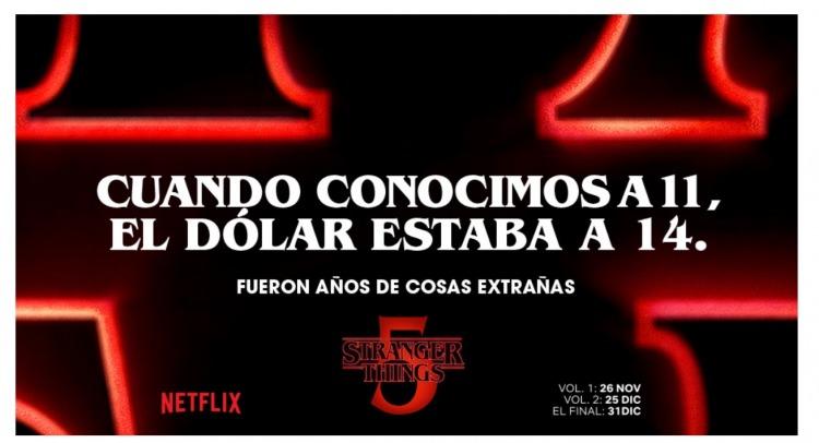 La nueva campaña de Stranger Things 5 generó revuelo en redes: un afiche oficial recordó que “cuando conocimos a 11, el dólar estaba a 14”, una frase que, más allá del guiño nostálgico, expuso con crudeza el deterioro económico que atravesó el país durante los años de ajuste del gobierno de Javier Milei.