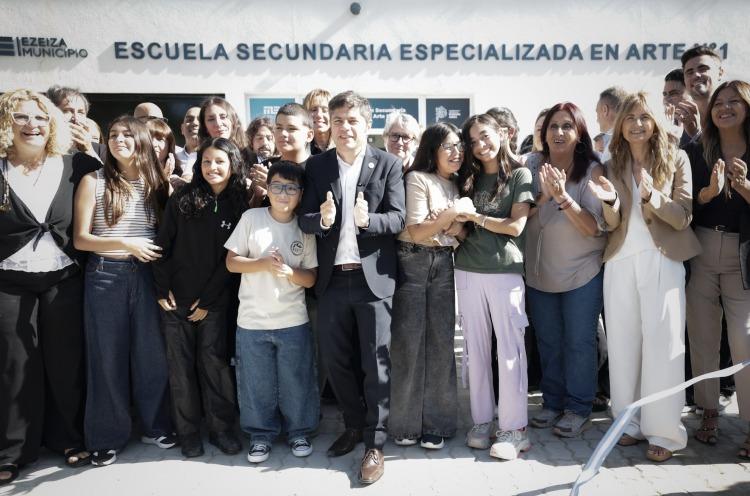 El gobernador de la provincia de Buenos Aires, Axel Kicillof, inauguró seis nuevos edificios educativos en el distrito de Ezeiza y destacó que se trata de una jornada histórica para la infraestructura escolar bonaerense. El mandatario estuvo acompañado por la directora general de Cultura y Educación, Flavia Terigi, y el intendente local, Gastón Granados, en un recorrido que incluyó escuelas secundarias, técnicas y una institución especializada en arte.