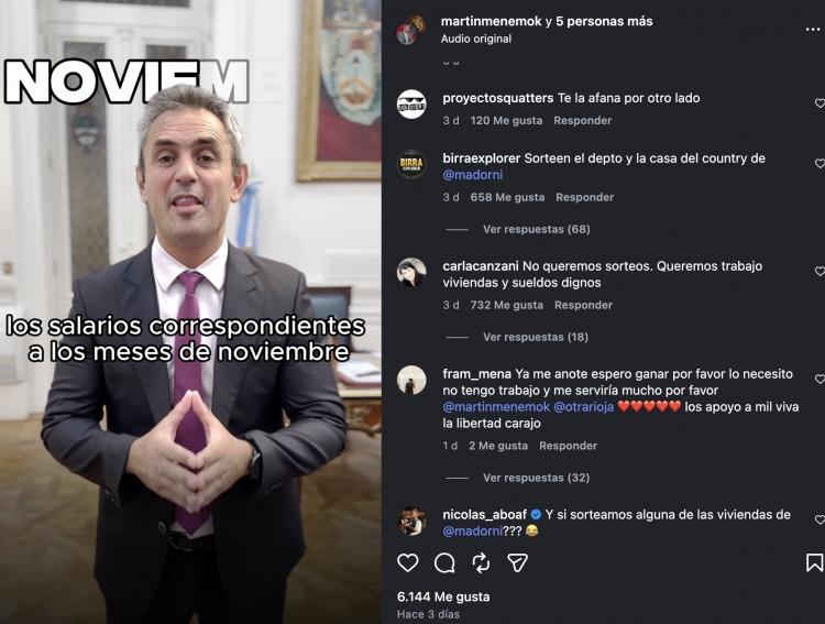 Entre los mensajes más virales, se destacaron frases como “Sorteen el depto y la casa del country”, en alusión directa al entorno del vocero Manuel Adorni. Otros usuarios fueron más duros: “No queremos sorteos. Queremos trabajo, viviendas y sueldos dignos” y “Circo sin pan”, sintetizando el malestar frente a medidas consideradas superficiales.