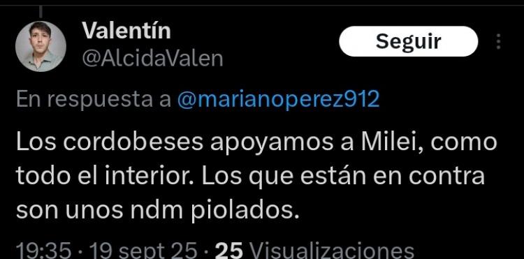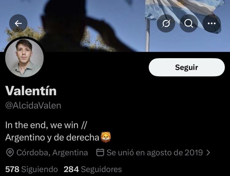 "Argentino, de derecha y león”, en alusión al presidente Javier Milei. De hecho, compartía con frecuencia mensajes de apoyo al mandatario libertario con la retórica de "neoliberales contra el resto".
