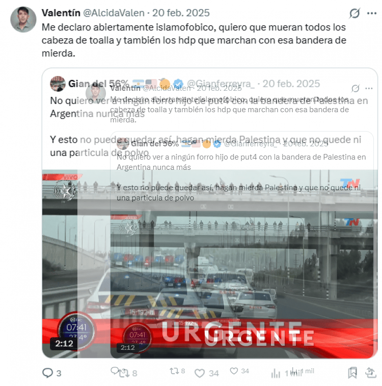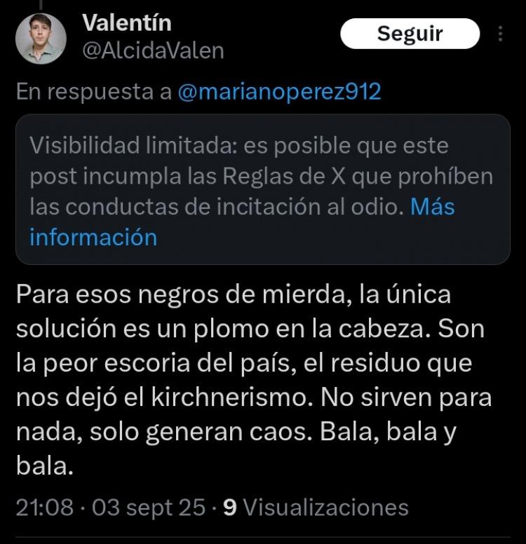 El rastro digital de Valentín Alcida, el estudiante de Psicología señalado como el femicida de Sophia Civarelli, revela su afinidad política con La Libertad Avanza y una marcada inclinación hacia discursos de odio. De su cuenta de X se desprenden comentarios homofóbicos, racistas y misóginos.