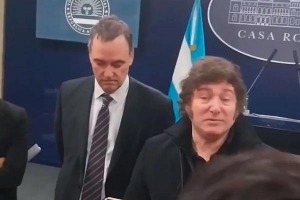 El Presidente se acercó a la sala de prensa de la Casa Rosada esta mañana e ingresó junto al vocero presidencial. El libertario volvió a respaldar a Pettovello, habló del rol que tendrá Sturzenegger y de su plan de reformar el Estado con Inteligencia Artificial.