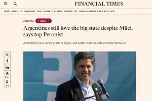 El diario económico inglés entrevistó al mandatario bonaerense, quien aseguró que fue elegido gobernador porque los argentinos siguen prefiriendo “un Estado presente, un Estado más grande y mejor”.