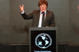 "Si alguien quiere romper al ministro Caputo, antes me tendrán que romper a mí", dijo el presidente Javier Milei ante los empresarios del Cicyp. Estuvieron presentes el ministro del Interior, Guillermo Francos; la ministra de Seguridad, Patricia Bullrich; la canciller Diana Mondino; y el presidente del Banco Central, Santiago Bausili.