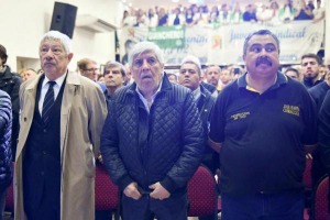 El secretario general del Sindicato de Camioneros encabezó un acto junto a otros referentes gremiales en homenaje al primer paro general realizado contra la dictadura, en una ceremonia donde hubo varias críticas al Presidente.