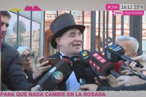 El mediático militante amarillo se presentó en la Casa Rosada y confesó su tristeza por la ausencia del PRO en las listas. También buscó saludar a Patricia Bullrich y reclamó una audiencia con el presidente.