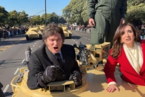 Acompañado por la vice, que faltó al Pacto de Mayo pero este martes participó de todas las actividades, el Presidente cerró el desfile militar por el Día de la Independencia subido a un tanque de guerra. "Viva la libertad, carajo", arengaron. Fotos y videos.
