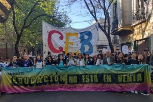 La comunidad educativa marchó este martes desde las calles Caseros y La Rioja hacia la Jefatura del Gobierno de la Ciudad en contra del "maltrato y ajuste" a la educación. Las tomas se mantienen en cuatro colegios.
