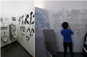 Medios y periodistas opositores compartieron las fotos, que les envió el Ministerio de Educación, de los supuestos daños durante la toma en el Mariano Acosta, pero las imagenes eran anteriores y esos baños fueron reparados por los alumnos en septiembre durante una "jornada de restauración".
