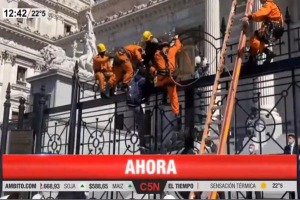 Un ciudadano de 36 años se trepó a las rejas del Congreso nacional y, desde allí, reclamó la presencia de un Juez. Lo hacía para reclamar por la existencia de "armas psicotrónicas que controlan la mente". Intervino la Policía Federal y bomberos lograron bajarlo. El video.