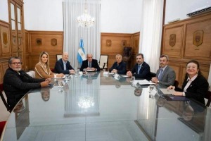 El jefe de Gabinete, Guillermo Francos, presidió este lunes el encuentro en la Casa Rosada junto a otros funcionarios, legisladores, gobernadores y representantes gremiales y empresariales, que debatió el punto siete y diez del Pacto de Mayo.