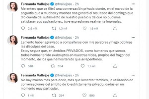 Salieron a la luz, a través de Clarín, audios en los que la diputada nacional cuestiona en duros términos la actitud que tuvo el jefe de Estado tras las PASO. "Hago públicas las disculpas del caso. Estoy segura que, en ámbitos privados, todos hemos tenido exabruptos", dijo.