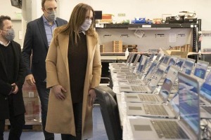 La ex gobernadora bonaerense ahora precandidata a diputada por CABA visitó la fábrica informática Exo, proveedora de las netbooks del programa Conectar Igualdad, y celebró la generación de empleos que impulsa la iniciativa que su propia gestión dejó sin actividad.