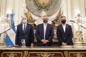 El Presidente agradeció a los ministros salientes Daniel Arroyo y Agustín Rossi. "Amigos seremos siempre. Has sido para mi una persona muy importante a la hora de tomar decisiones. Nuestra amistad nunca se quebró ni se va a quebrar", señaló el mandatario