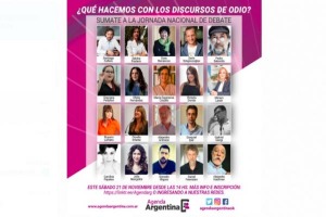 Este sábado se desarrollará una nueva jornada nacional interactiva. En “Qué hacemos con los discursos de odio?”, El objetivo será elaborar propuestas ante este fenómeno preocupante de alcance nacional. También estará presente la ministra de Seguridad, Sabina Frederic, entre otros dirigentes e intelectuales.