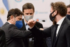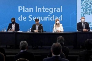 El mandatario provincial anunció que unos 39 mil oficiales de la Policía Bonaerense "pasarán a percibir un salario (inicial) de bolsillo de 44 mil pesos" y dijo que, con esta decisión, "comienza una equiparación del salario con el de la Policía Federal Argentina". Junto a Kicillof estuvieron Magario, Bianco y Sergio Berni.