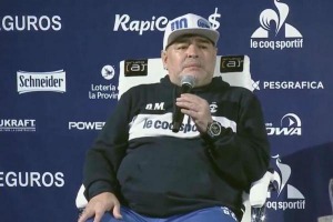 En el marco de la conferencia de prensa por la presentación de Diego Maradona como DT de Gimnasia y Esgrima de la Plata, Giselle Fernández, hermana de la ex presidenta, emocionó al astro futbolístico al regalarle un llavero de su madre. Por otra parte, el 10 se refirió a la situación del país. Mirá lo que dijo.