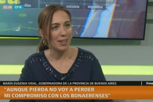 La gobernadora bonaerense hizo mención a una posible derrota en las elecciones y sostuvo que "si Axel Kicillof es elegido voy a hacer todo lo posible para que le vaya bien". De todos modos aseguró que "aunque pierda no voy a perder mi compromiso con los bonaerenses".