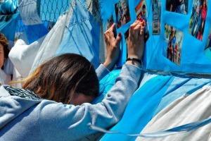 La esposa de un tripulante contó que su marido le advirtió que "un submarino inglés los estaba siguiendo" y lamentó que "desde el primer momento" lo contó pero recién ahora lo que dijo "está saliendo a la luz". Además sostuvo que espera que el encuentro con el presidente sea productivo, ya que según la mujer Aguad hizo "promesas que quedaron en el viento".