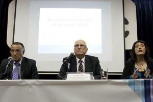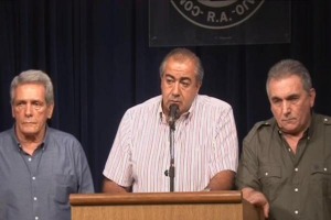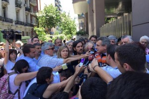 El jefe de bloque FPV-PJ Agustín Rossi dio una conferencia en la calle debido a que las fuerzas de seguridad orquestadas por el Gobierno no dejaba ingresar a los diputados al Congreso. Clima de tensión que comenzó con avances policiales, gases y balas de goma.