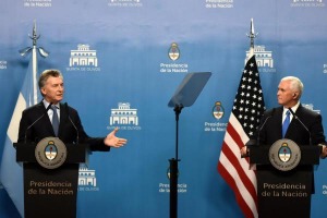Mauricio Macri con el vicepresidente de los Estados Unidos quien destacó las medidas económicas de Cambiemos a las que calificó de "audaz". El Presidente señaló que la visita de un alto miembro de la Casa Blanca "ratifica el nivel de interés y entusiasmo por la Argentina" desde el país del norte.
