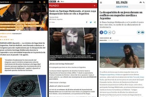 La BBC, El País, The Guardian y Sputnik se hicieron eco de la desaparición en Chubut de Santiago Maldonado durante un operativo de Gendarmería en un paraje de la comunidad mapuche. Apuntan contra el rol de la ministra de Seguridad PRO, que, a pesar de los testimonios, intentó desligar a fuerzas de seguridad y cargó contra los pueblos originarios.
