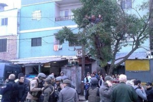 Estaba trepado a la cima de un árbol en supuesto estado de ebriedad mientras la ministra de Seguridad encabezaba el operativo junto a 2500 efectivos de distintas fuerzas en el Bajo Flores. Un efectivo le ofreció $50 para que se baje debido a la incomodidad de los funcionarios. Mirá el video.