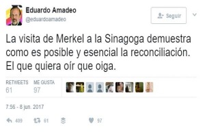 Eduardo Amadeo habló de "reconciliación" luego de que la mandataria alemana visite una Sinagoga en Buenos Aires. Además desafió: "el que quiera oír que oiga".