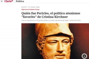 A través de un artículo, el "gran diario argentino" utilizó a un dirigente griego del siglo V, el "político ateniense ´favorito´ de Cristina Kirchner", para sugerir que defender la democracia es comparable con el populismo, categoría sociológica a la que habitualmente critica con dureza.