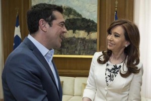 Cristina Fernández fue recibida por Alexis Tsipras. El mandatario sostuvo que "pese a la lejanía" consideraba que ambos países tienen "mentalidad semejante".