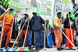 Trabajadores de limpieza tercerizados de la cartera laboral realizan una protesta, y denuncian que el organismo dispuso de personal que habitualmente no se desempeña en el edificio para que realice las tareas.