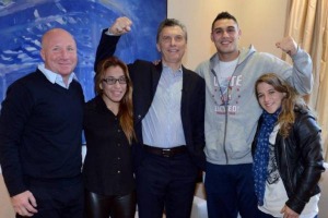 Durante la visita oficial a la fábrica de helicópteros en Cicaré, el Presidente y la Gobernadora de Buenos Aires ordenaron a efectivos de la Policía Federal y de la Gendarmería que bloquearan el paso a un grupo de maestros que intentó acercarse a los funcionarios.