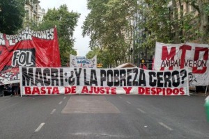 Manifestantes del FOL, el MTD Aníbal Verón y la Federación de Organizaciones de Base realizan un piquete frente al Ministerio de Desarrollo Social, a la espera de ser recibidos por la ministra Carolina Stanley. Piden participar del Consejo de la Economía Popular.